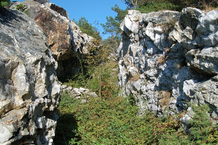 Feltspattgruve, delvis gjenngrodd, i
